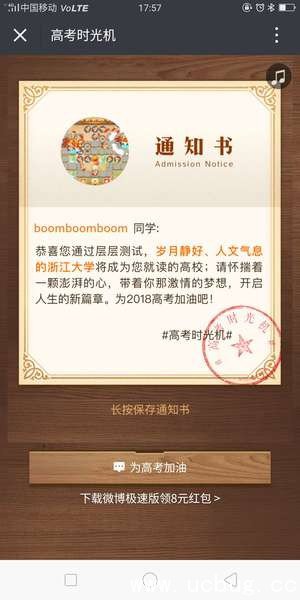 三、专属于你的“录取通知书”就完成了,不满意你录取的学校没关系,选择不一样的选项再来一次就可以了,众多名校总有一款适合你。
