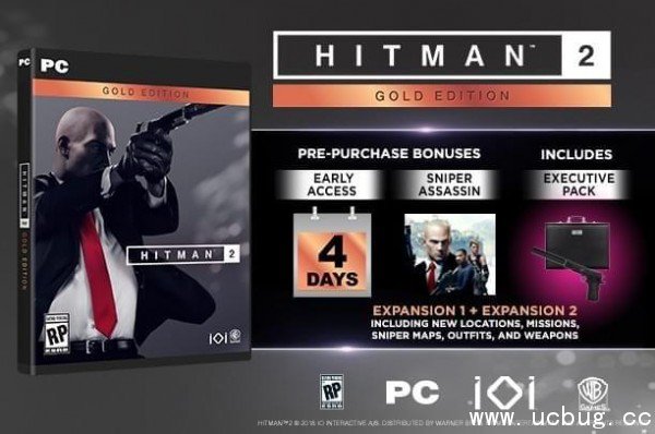 黄金版:提前4天获取游戏;预购就可以直接进入游玩《杀手:狙击手刺客》,这是独立于《杀手2》亦包括其中的模式,可以单独下载;“暗杀包”下载内容;“第一部资料片”下载内容,包括新地图、新任务、新服装、新武器,Steam国区售价256元。