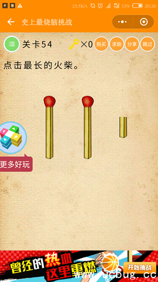 点击最长的火柴。这一关看到两根相同长度的火柴是不是很无奈?是不是眼睛看瞎都不知道哪个更长,那么就跟斜杠小编一起来看看。