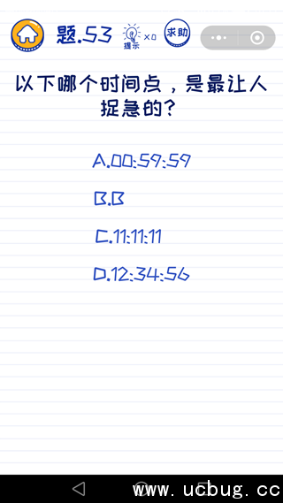 微信坑爹萌萌答第53关是以下哪个时间点,是最让人捉急的?难度比较简单,那么微信坑爹萌萌答第53关怎么过呢?下面斜杠小编将给大家带微信坑爹萌萌答第53关答案。
