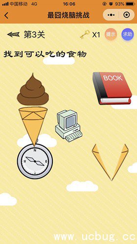 微信最囧烧脑挑战第3关是找到可以吃的食物。难度比较简单,那么微信最囧烧脑挑战第3关怎么过呢?下面斜杠小编将给大家带微信最囧烧脑挑战第3关答案。