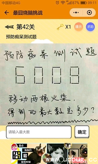 微信最囧烧脑挑战第42关是预防痴呆测试题6008。难度比较难,那么微信最囧烧脑挑战第42关怎么过呢?下面斜杠小编将给大家带微信最囧烧脑挑战第42关答案。