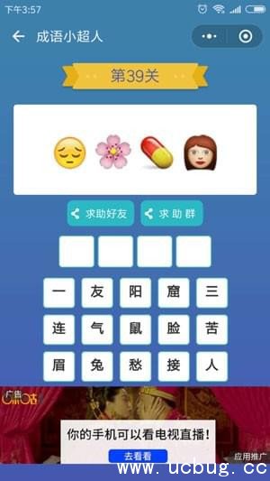 成语小超人第39关比较难,图案一是苦脸,图二是花,图三是药丸,图四是头像,那么成语小超人第39关怎么过呢?下面斜杠小编将给大家带来成语小超人第39关答案。