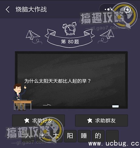 微信烧脑大作战第80题为什么太阳天天都比人起的早答案