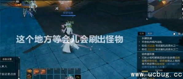 在未知区域中,等待一会,刷出杂兵刷完即可。