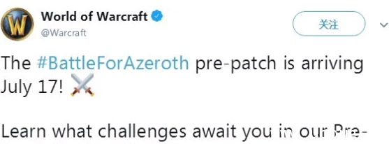 《魔兽世界》8.0正式上线时间为8月14日,今日官方宣布了8.0前夕的开启日期——7月17日。