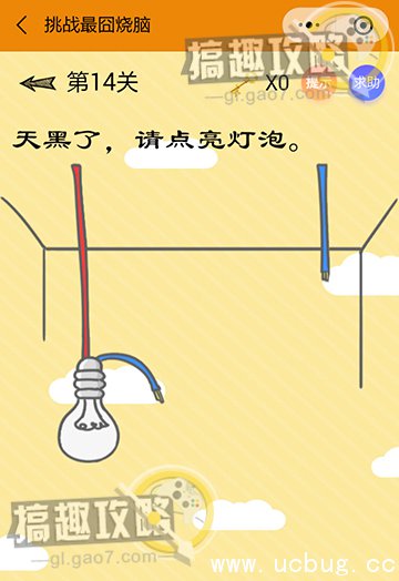微信挑战最囧烧脑第14关攻略 天黑了请点亮灯泡答案