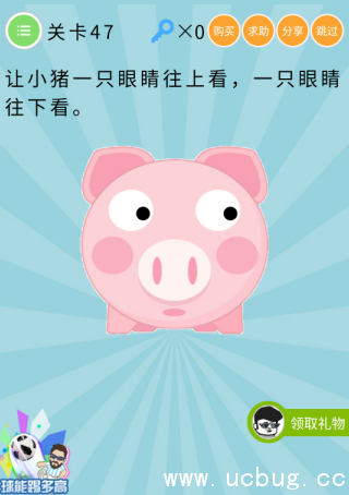 微信最无敌烧破大脑第47关攻略 让小猪一只眼睛往上看一只眼睛往下看