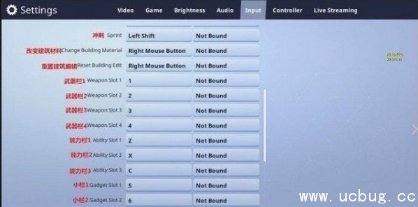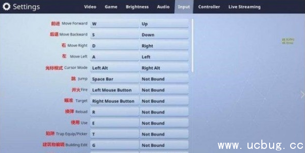 瞄准;打开地图时进行标点/取消标点;改变建筑材料