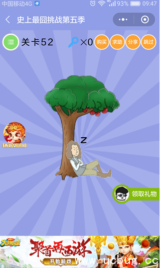 答案解析:牛顿在树下面睡觉的时候,是出现了8个z,还有关卡52,2也是一个z。