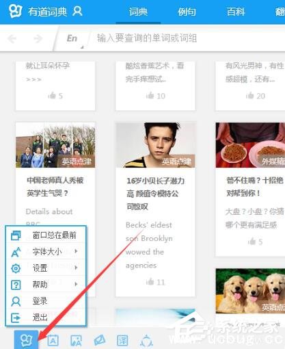 2、点击有道词典面板的“左下角”,如图2所示: