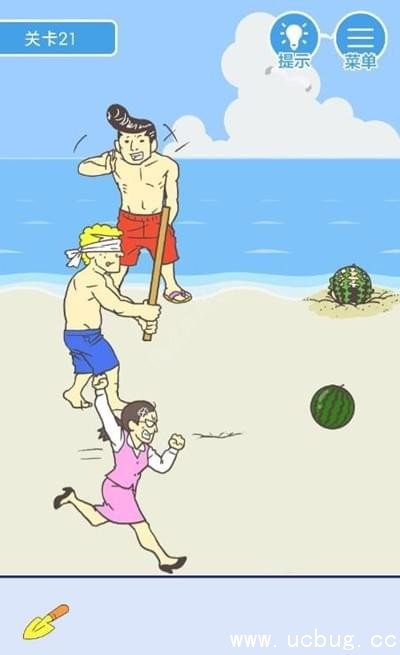 然后来到场景2,点击右上方的海藻,然后用小铲子挖一个洞,