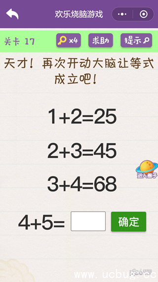 微信欢乐烧脑游戏第17关攻略 再次开动大脑让等式成立吧