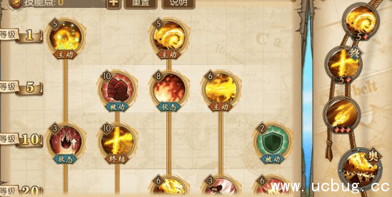 20级技能:大炎戒点满(奥义技能),灼烧只点前置,火属性强化必须点满。