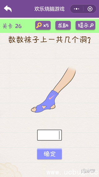 微信欢乐烧脑游戏第26关攻略 数数袜子上一共几个洞