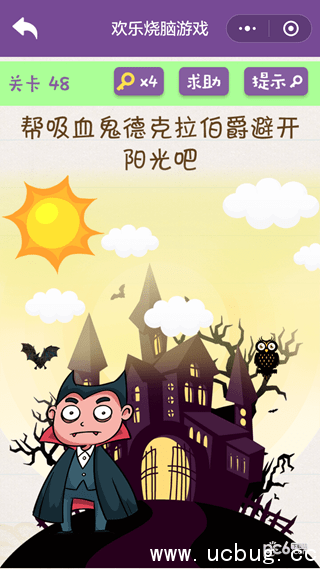 微信欢乐烧脑游戏第48关攻略 帮吸血鬼德克拉伯爵避开阳光吧