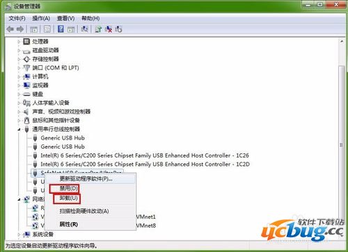如果更新没用,同样是右击对应的选项,然后禁用,接着再启用,如果还不行就直接点击卸载,然后重启电脑,usb会自动重新识别,一般这样做简单的问题就可以解决了。