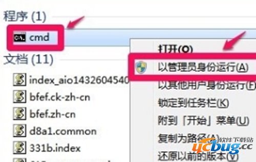 1、单击 "开始", 在搜索栏中输入 CMD, 右键单击程序下的 cmd, 在右键单击菜单左键单击: 以管理员身份运行 (A), 打开 "管理员" 命令窗口。