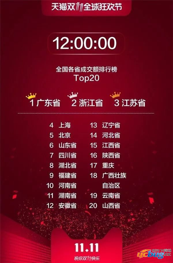 这场狂欢昨晚落下帷幕,又一次刷新去年纪录,也说明中国越来越强大,越来越自信,中国人越来越舍得为自己花钱。回头看看你所在的省,在第几位?你拖后腿了吗?
