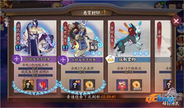 任务共有七个,15级及以上的阴阳师可参与完成对应任务,领取悬赏封印奖励,并且获得鬼切断刃碎片。