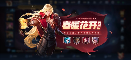 1. 春暖花开活动持续进行中,参与活动收集道具免费得永久皮肤/英雄,每日对局有机会抽永久英雄。