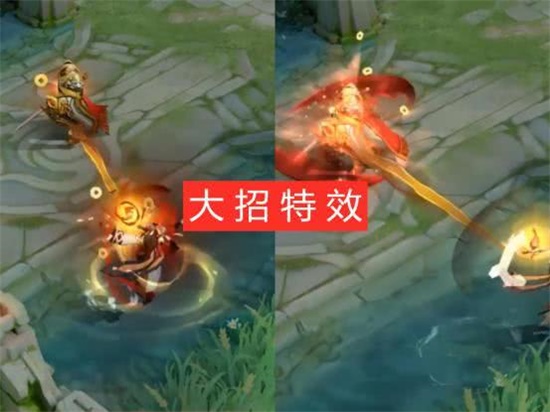 大招的特效看起来和12技能也有一些相似,使用大招给队友回血的时候的特效也很有看点,小明在施法的时候,身前就会出现铜钱和暗红色的特效,施法完成是释放技能后,队友的身上也会出现暗红色的特效和铜钱。整体来说小明的这款赛季皮肤还是非常不错的,皮肤的造型很帅气,然后铜钱特效也非常炫酷。
