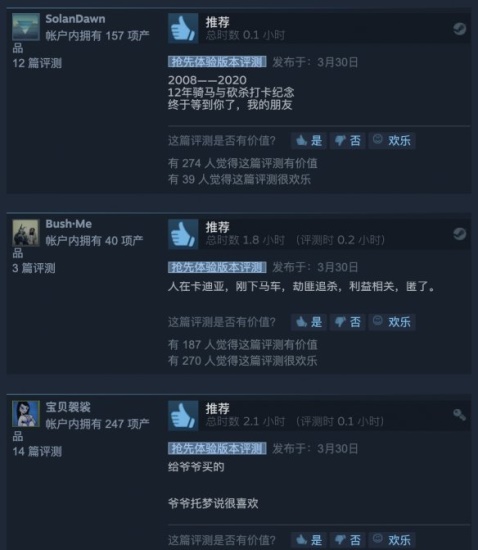 距离《骑马与砍杀》发售的2008年已经过去了12年,今日(3月30日),《骑马与砍杀2:领主(Mount and Blade II: Bannerlord)》抢先体验版正式发售,目前Steam玩家评价“特别好评”,89%的好评率。