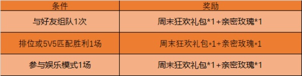 周末峡谷开黑得亲密玫瑰,与基友、战友、恋人、师徒等组队参与对局领亲密玫瑰!