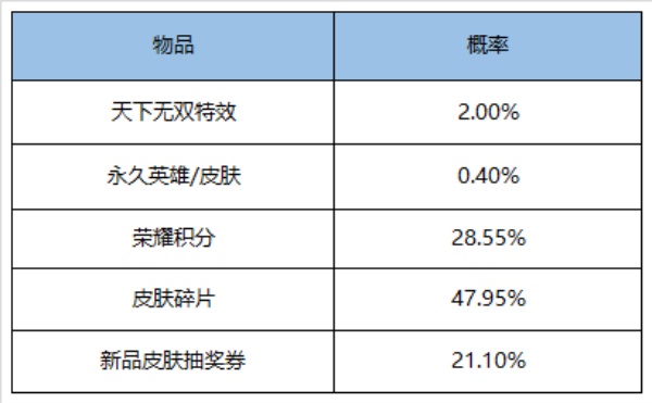 体验卡可用于兑换本期的热门皮肤体验卡,热门英雄体验卡、礼包(有机会开出永久皮肤盘古-创世神祝,虞姬-加勒比小姐)