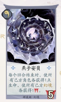 效果:每个回合结束时,使所有己方角色各获得1点生命,使所有己方幻境各获得1耐久。