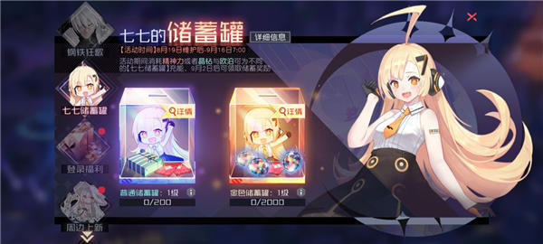 七七的储蓄罐!消耗精神力、晶钻和欧泊,升级储蓄罐,获得更高奖励吧!