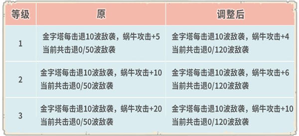 (我们将会给满足条件的蜗爷补发由于调整前后差异而缺少的奖励,请注意查收!) -调整了医疗装置每级的治疗剂上限