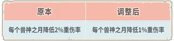 ( 调整后,我们会根据已获得的兽神之月数量,通过邮件发放对应补偿,请注意查收!)