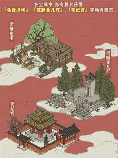在宝库中,您有机会获得孟母老宅、沉睡兔儿灯、天妃宫等稀有建筑。