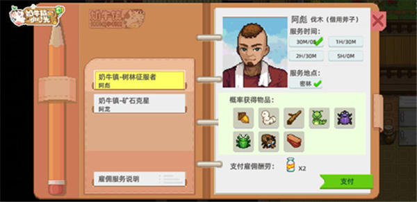 全新的雇佣玩法,只需要花费两瓶牛奶,就可以雇佣帮工帮你伐木、挖矿,轻松获取超多资源。你可以根据自己资源的需求,调整雇佣的时间,达到付出与回报的最大产出比,轻松赚大钱。结束了每天都要上山伐木、下地挖矿的日子,空出的更多时间,去做自己想做的事。