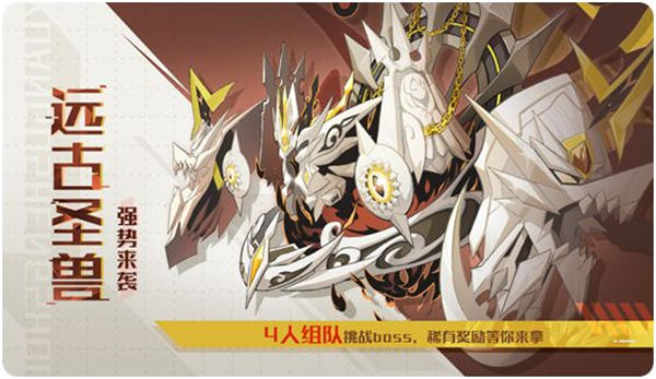 活动内容:远古圣兽BOSS更新!本周更新后,远古圣兽玩法新增圣兽BOSS—弗丽嘉,使用远古令时即可随机召唤出现,快去加入战斗吧~妈妈再也不用担心我被万年貘欺负了~