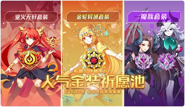 活动内容:业火无轩套装、金轮异域套装、魔族套装祈愿概率提升!前20次祈愿必出对应奖池金装,机会难得,不容错过!(注意:仅套装出现的概率提升,金装总概率不变)