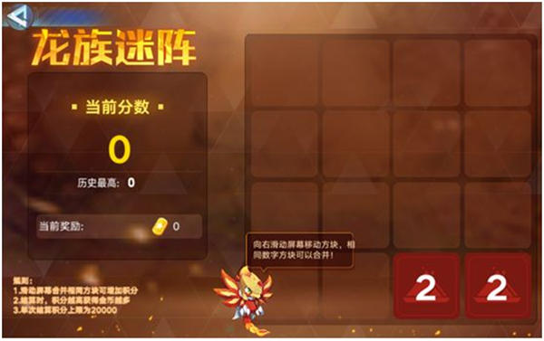 3.龙族试炼中,将会出现龙族迷阵试炼任务,玩家可通过在4×4的迷阵中合成相同数字的方块,不断增长积分以此完成任务提升龙族之力等级