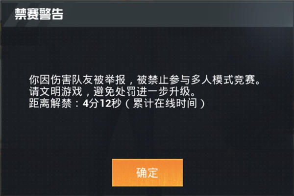 如果被多次举报恶意淘汰队友,禁止参与多人模式处罚的时间会递增,恶意行为越频繁,禁赛时间越长。