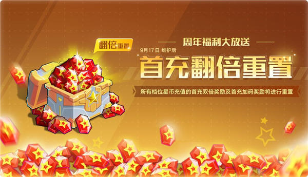 活动内容:周年庆首充双倍重置大福利开启, 9月17日完成更新后,商城中所有星币充值档位将进行全面重置!小奥拉们可以再次享受首充翻倍和首充加码福利。