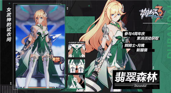 活动期间,通过补给累计消耗3万水晶,可直接获取辉骑士·月魄新服装「翡翠森林」!
