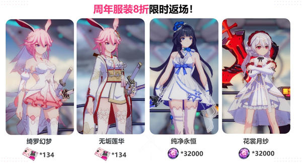 9月21日12:00~10月16日12:00期间,多款往期人气服装将重新开放购买!活动期间,所有返场服装、所有常驻特殊服装均享受周年限定八折优惠。