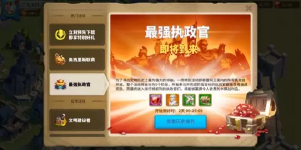 游戏一般每隔一个月就有一次大型活动,如最强执政官、植树节等,完成相应的活动要求就能获得大量宝石。