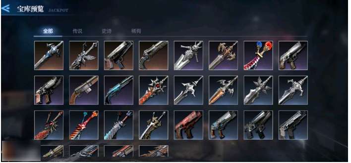 鬼泣巅峰之战的武器现主要获取来源是卡奥宝库,除此之外只有日常签到可以获得的【霰弹枪】和【风火双刀】了。其中武器的品质分为传说、史诗、稀有,建议玩家选择强化传说品质的武器(新手玩家十次内必出史诗武器、三十次之内必出传说武器)。