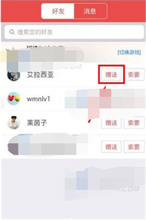 第二步;在这里选择你的好友栏,然后再好友栏中选择你想赠送商品的好友,在好友名字后面会有赠送的两个字,点击即可。