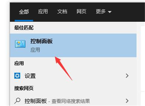 2、然后在搜索结果中打开“控制面板”