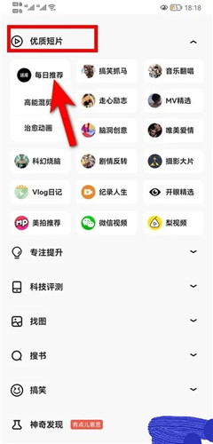 点击优质短片,选择短片类型。