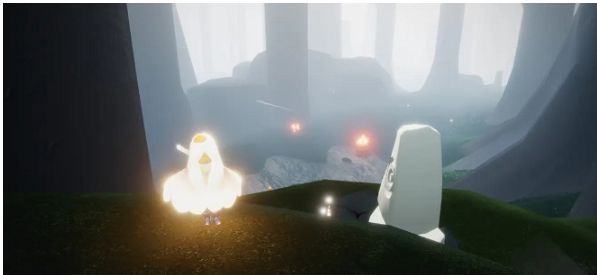 首先,我们先来的雨林图,走过三道门,就到了第三张图的位置,这里有光之翼的地方就是第三道门哦,继续向前,非常好认的!签名有个小亭子,亭子的右侧有一个隐藏图入口,不过需要玩家收集了雨林的八个先祖才可以点火打开。