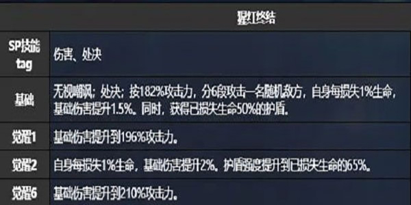 1.猩红终结:sp技能,伤害,处决,巫师嘲讽,血量越低伤害提升越高。