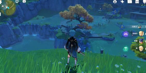 6、往南方向走右下方看到最后一座塔,点亮后回去拿宝箱得到第一个 无名宝藏,然后接下来去灵矩关,需要用到(平民攻略:需要用到风主角,凯亚,诺艾尔,安柏),来到黄树下,第一个机关,附近本来有很多的红色爆炸的植物,踩完后可以解锁这个机关。